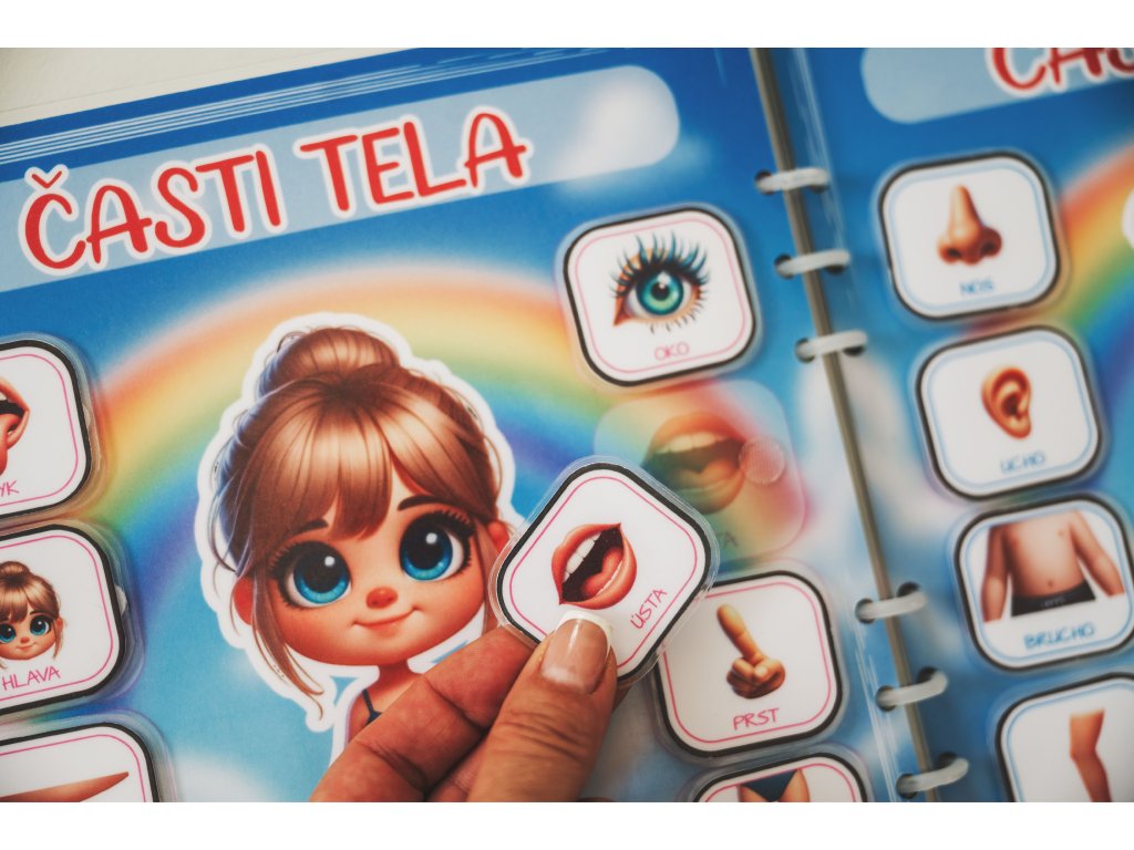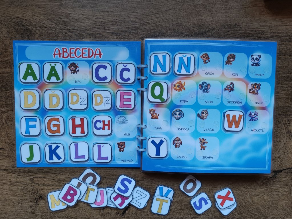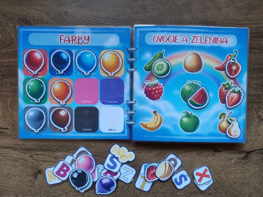 Všetky strany aj jednotlivé dieliky sú zalaminované, doplnené o suchý zips a určené na opakované používanie.