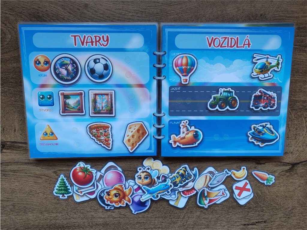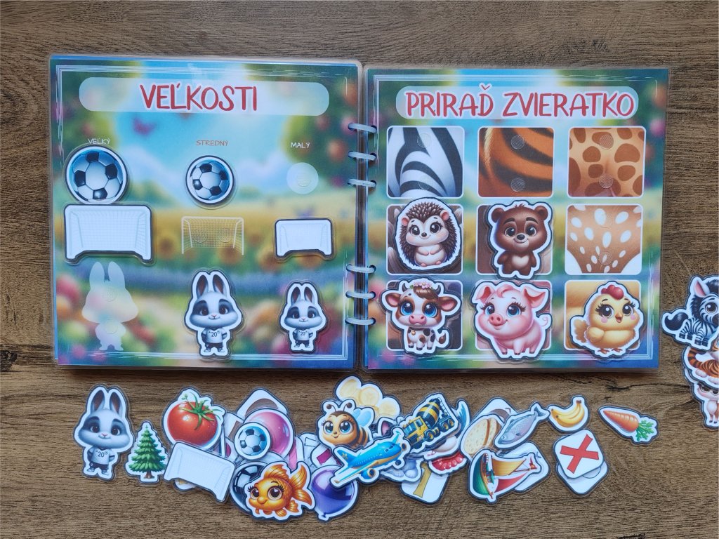 Tento ručne vyrábaný pracovný zošit na suchý zips ponúka deťom zábavný a zmysluplný spôsob učenia hrou. Prostredníctvom obrázkov, priraďovania a manipulácie s komponentmi deti prirodzene rozvíjajú svoje schopnosti a objavujú svet okolo seba.
