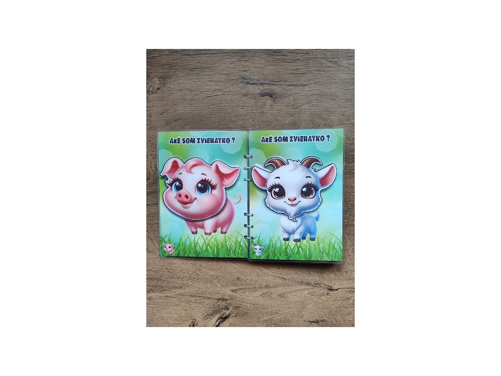 Na každej strane sa nachádza jedno zvieratko a dieťa má za úlohu priradiť hlavičku zvieratka podľa jeho tela a tieňa, pričom hlavičky sú pripevnené na suchý zips, aby sa dali opakovane používať.