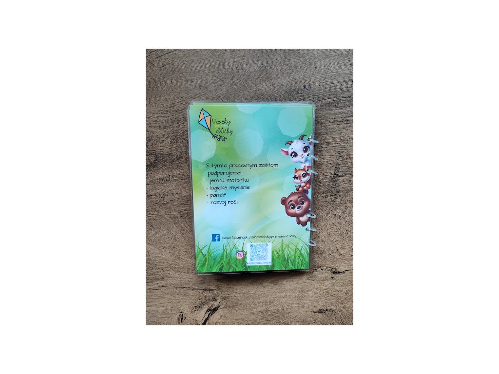 Zošit je ručne vyrábaný, všetky strany aj komponenty sú zalaminované, čo zaručuje dlhodobé používanie a bezpečné hravé učenie.