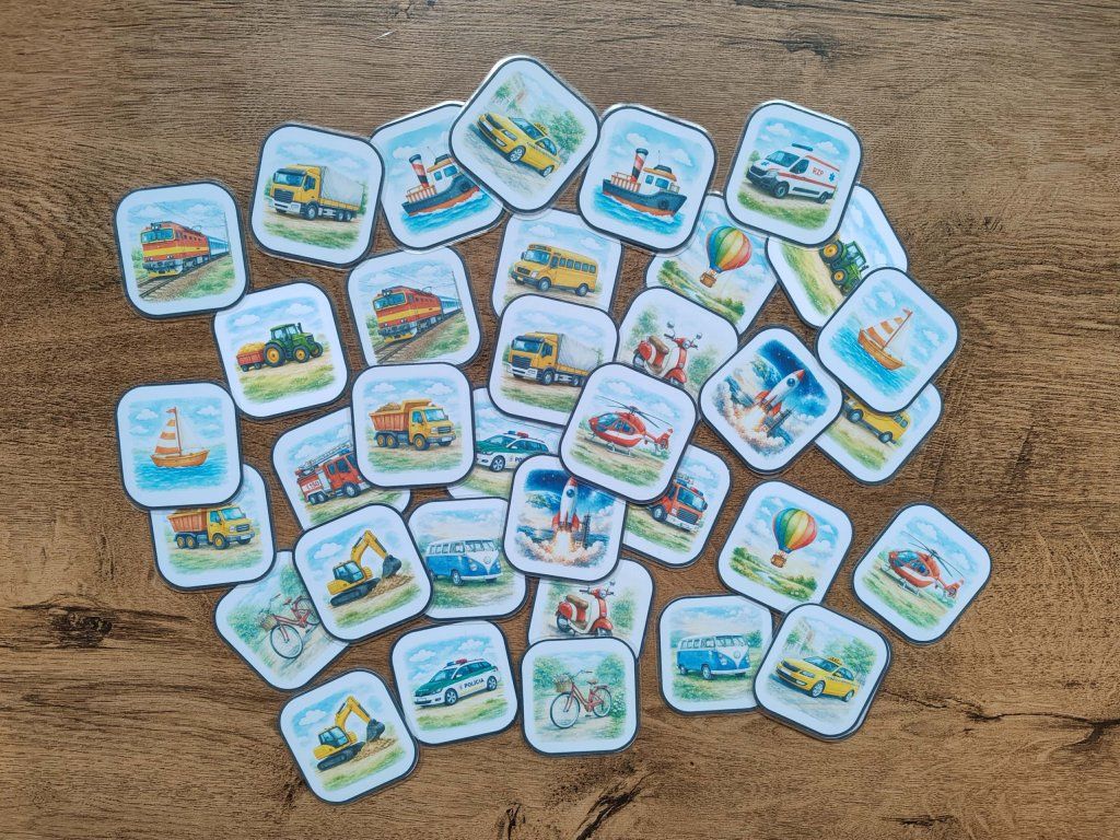 Zábavné pexeso, vďaka ktorému deti spoznávajú rôzne druhy vozidiel – od áut, cez vlaky až po lietadlá ![]()